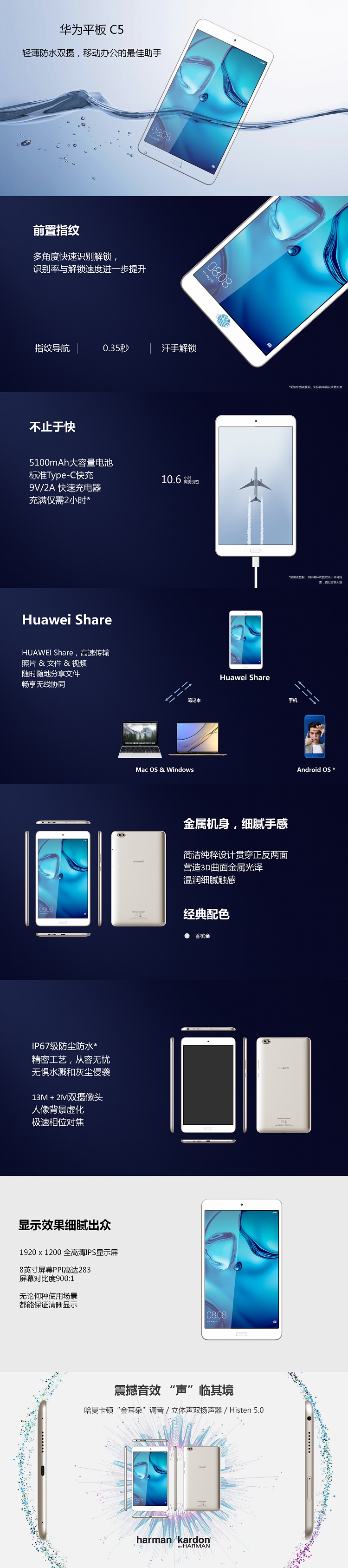 华为 C5 BZW-AL10 8英寸平板电脑(Kirin659八核/4G+64G/LTE)