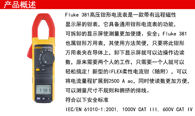 福禄克(FLUKE)远程显示真有效值钳形表FLUKE-381/CN G20160976