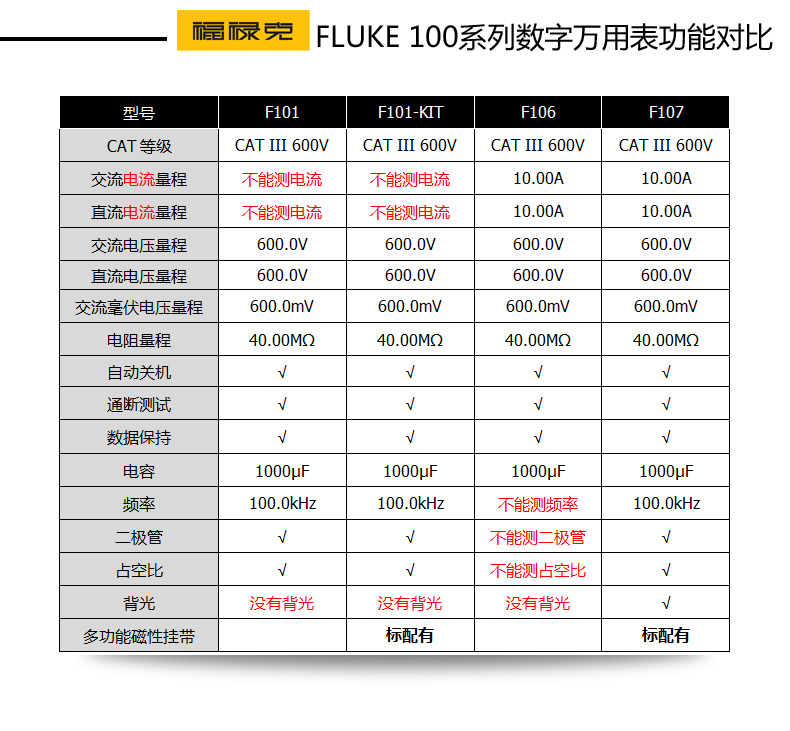 福禄克(FLUKE)F101 掌上数字万用表 FLUKE-106 G20160976
