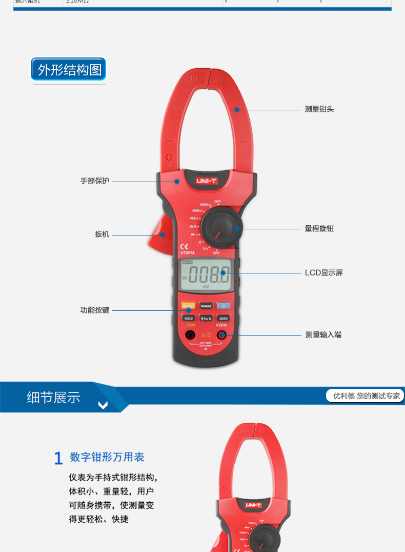 当前位置:首页 > 建筑建材-五金工具 > 优利德1000A钳形表数字万用表高精度电流表 UT208A G20160976
