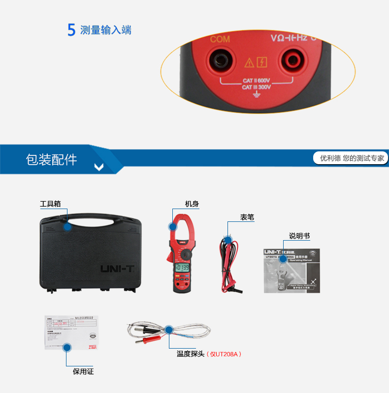 优利德1000A钳形表数字万用表高精度电流表 UT208A G20160976