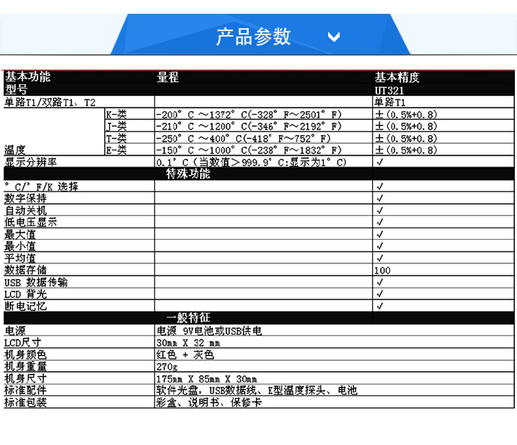 优利德(UNI-T)UT321 温度表(单路) G20160976