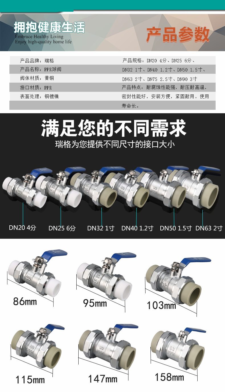 瑞格阀门黄铜加厚PPR双头活接球阀 PPR热熔管快开水阀门DN25