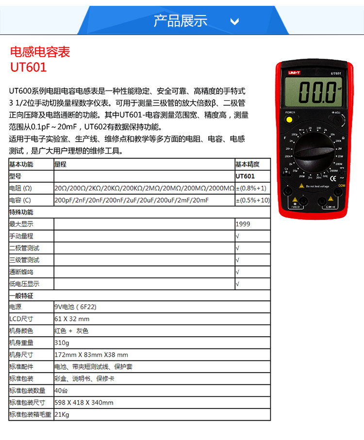 优利德(UNI-T) UT601 电阻电容表 G20160976