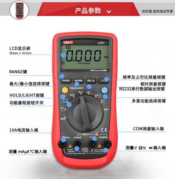 优利德(UNI-T)UT61A 自动量程万用表(贴片架) G20160976