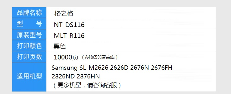 格之格(G&G)NT-DS116 黑色硒鼓组件(适用于三星SL-M2626/2676N/2826ND/2876HN)