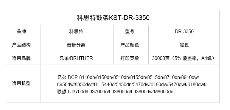 科思特DR3350鼓架 适用兄弟 DCP8950 HL5470dw HL6180 联想LD4637 专业版