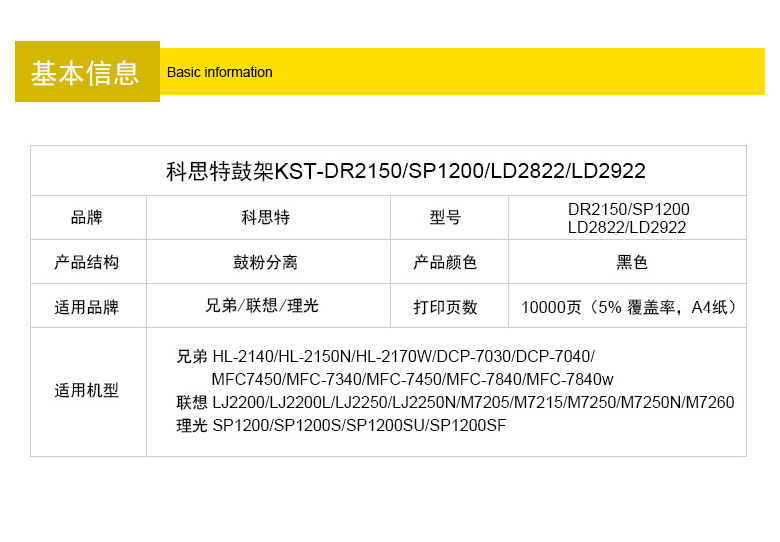 科思特DR-2150鼓架 适用兄弟MFC-7340 联想LD2822 LD2922 理光SP1200 专业版