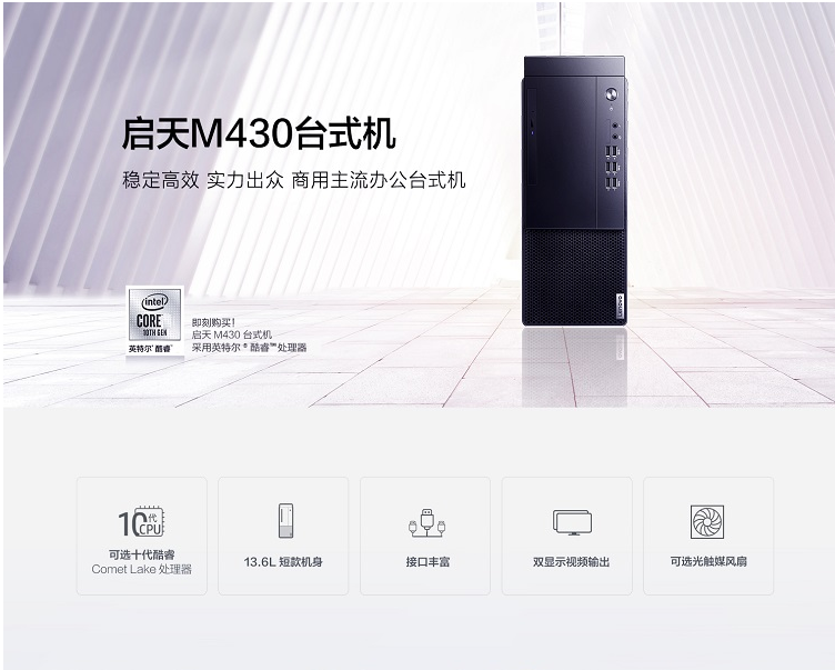 联想 启天M430-B459台式计算机 i5-10500/8G/128G SSD+1T HD/集显/DVDRW/DOS/3年保修 单主机