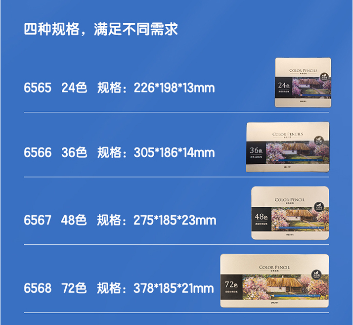 当前位置:首页 > 教学仪器用具类-美术用具 > 得力(deli)6565 高档油性彩铅 (24支/盒)