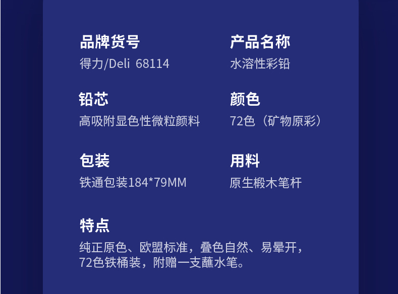 当前位置:首页 > 教学仪器用具类-美术用具 > 得力(deli)72色水溶性彩铅 68114