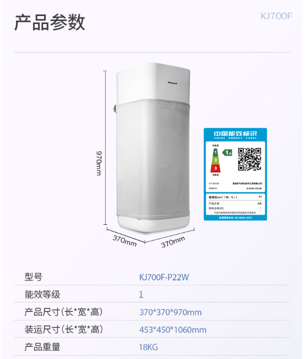 霍尼韦尔(Honeywell) KJ700F-P22W 空气净化器 消毒除菌去除甲醛 大空间空气消毒机