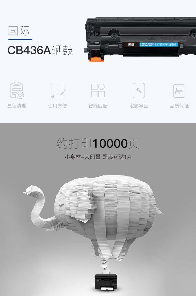 国际CB436A 黑色 硒鼓 适用机型 HP P1505/P1505n惠普M1120/M1522n/ M1522nf G10758