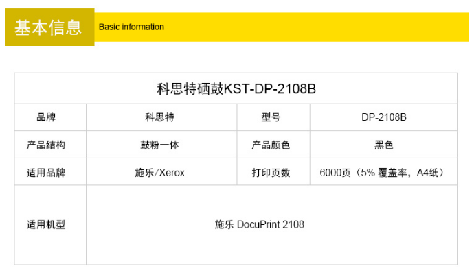 科思特 DP-2108B 黑色硒鼓 适用富士施乐打印机 DocuPrint 2108 G10758